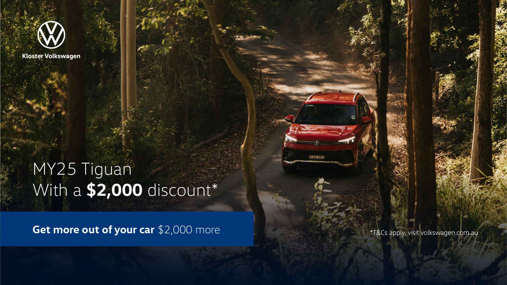For a short time, secure $2,000 off the MY25 Tiguan at Kloster Volkswagen.
